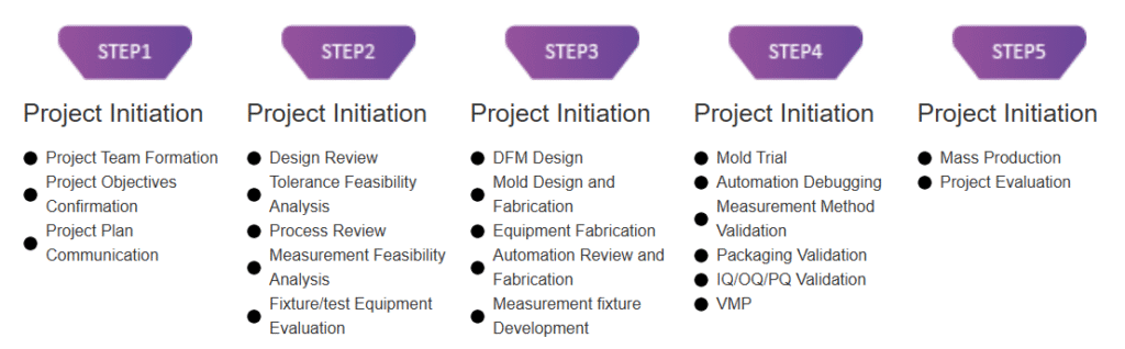 In high-demand industries such as medical devices, we have an experienced DFM team that enables us to identify potential manufacturing issues early in the design phase. We provide effective solutions through design reviews, tolerance analysis and process evaluation. We focus on DFM and mold design and fabrication to ensure efficient transition from design to mass production.